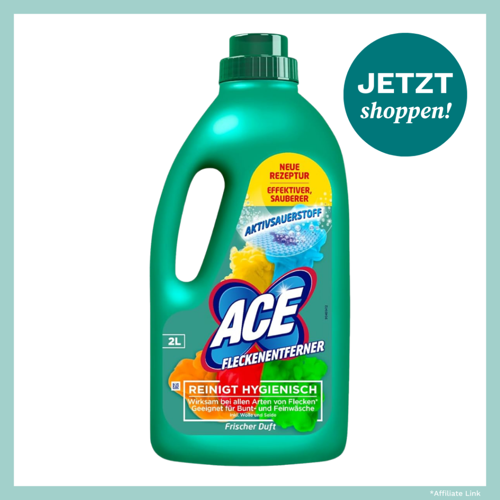 <p><strong>Übrigens: Mein persönliches Highlight ist neben Gallseife dieser ACE Fleckenentferner. Er sagt wirklich jedem hartnäckigen Fleck den Kampf an. Du bekommst ihn in so gut wie jedem dm oder auch hier bei <a href="https://amzn.to/4d9tgi3" target="_blank" rel="noreferrer noopener sponsored nofollow">Amazon</a>*.</strong></p>