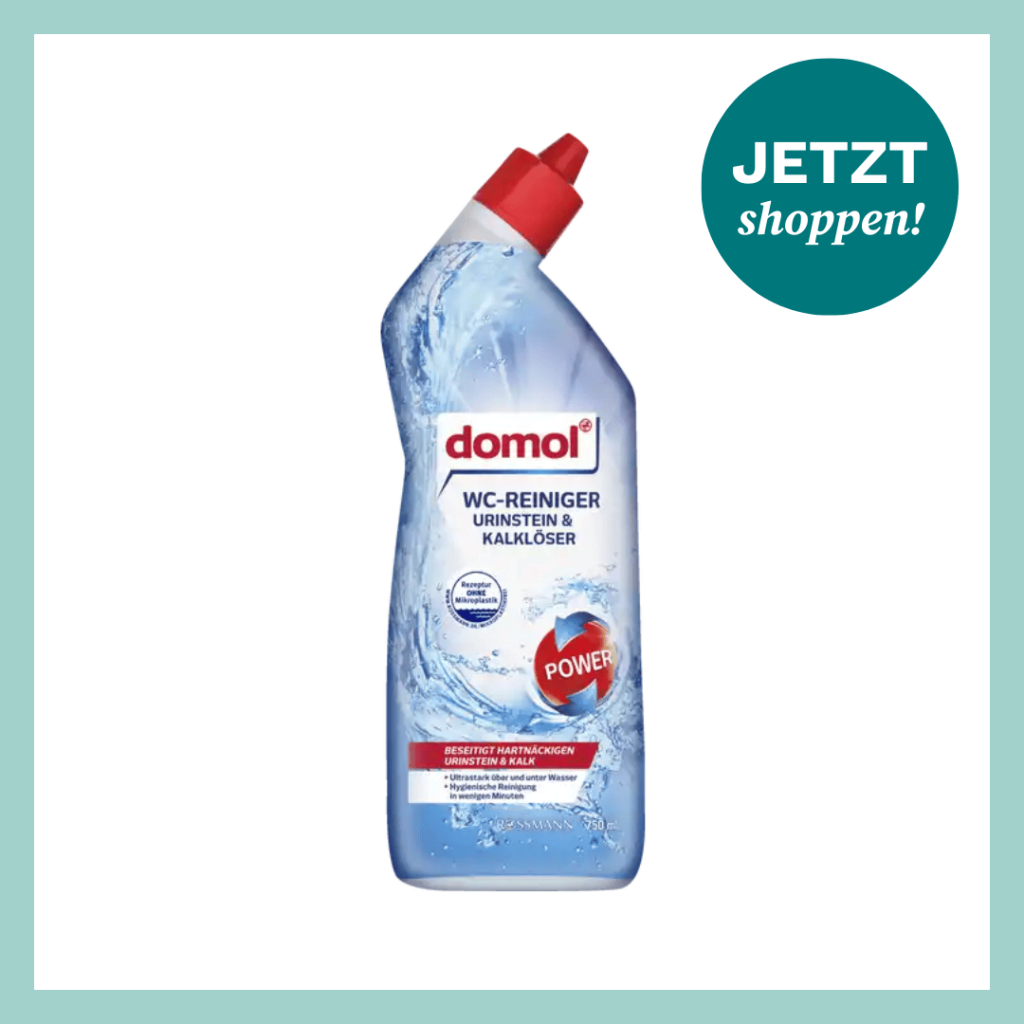 An erster Stelle seiner Must-haves fürs Bad steht der Domol WC-Reiniger Urinstein & Kalklöser von Rossmann*, der nur 1,29 Euro kostet.