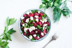 <div class="wprm-recipe-summary wprm-block-text-normal">In leuchtendem Pink, mit cremigem Feta und frischer Petersilie zaubert dieser Rote-Bete-Salat dir in Minuten einen Gute-Laune-Kick auf den Feierabendtisch.</div>