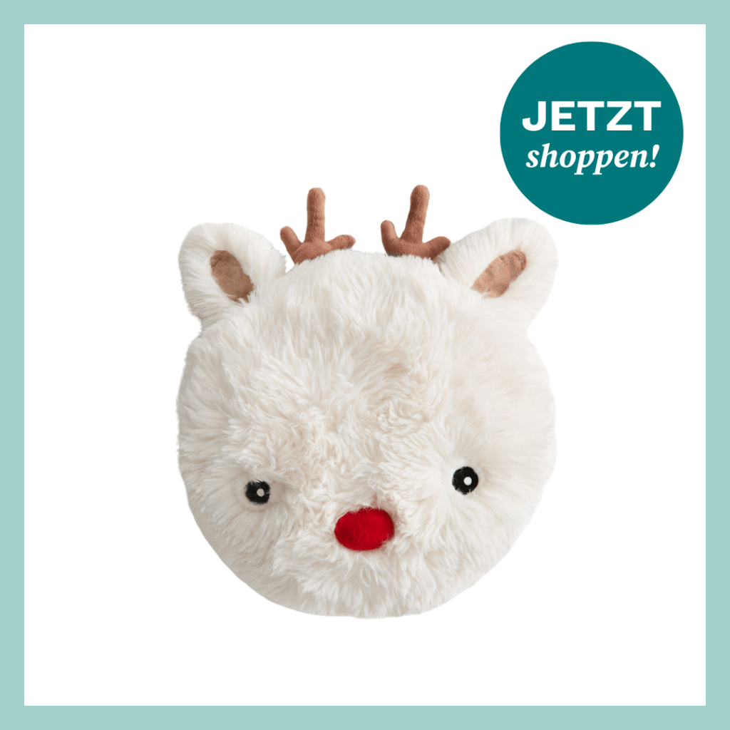 Du willst deiner Weihnachtsdeko etwas Verspieltes verpassen? Dieses Kissen in Form eines Rentierkopfes aus weichem, flauschigem Stoff* bringt sofort Winterstimmung ins Zuhause – ganz egal, ob auf dem Sofa, im Schlafzimmer oder natürlich im Kinderzimmer. Mit seinen angenähten Ohren, dem Geweih und den süßen gestickten Details ist es ein echter Hingucker für die ganze Familie.