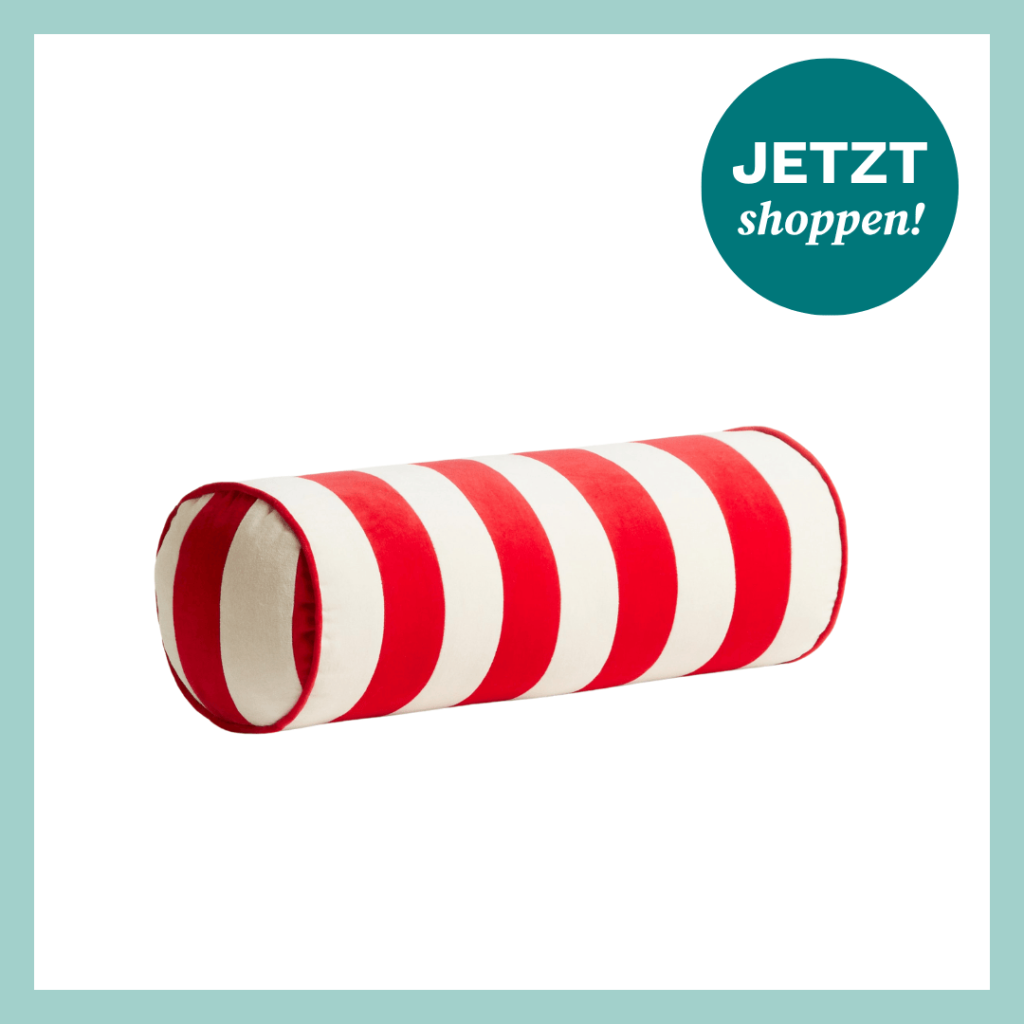 Ja, selbst die Nackenrolle bekommt bei H&M Home dieses Jahr ein winterliches Update. Dieses Kissen aus weichem Samt* erinnert mit den breiten Streifen nämlich an eine Zuckerstange, wie es sie an Weihnachten überall gibt. Echt süß!