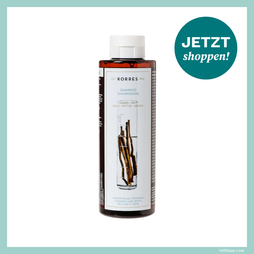 Dieses Shampoo* ist eine gute Wahl, wenn dein Ansatz schnell fettet, dein Haar aber gleichzeitig kraftlos wirkt. Korres setzt hier auf eine Kombination aus Brennnessel (Urtica) und Süßholz (Liquorice). Brennnessel ist ein klassischer Inhaltsstoff bei fettiger Kopfhaut, während Süßholz dafür bekannt ist, ausgleichend und beruhigend zu wirken.
