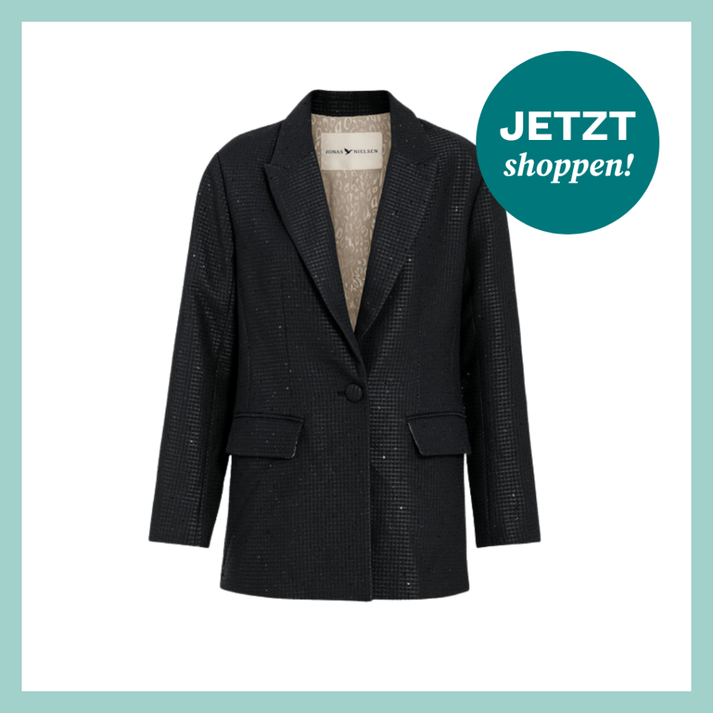 Für einen eleganten Weihnachtslook kombiniere ich den Blazer am liebsten mit einer schwarzen Wide-Leg-Hose, einem feinen Satin-Top und spitzen Loafern oder Heels. Wer es lässiger mag, stylt ihn mit dunkler Jeans, T-Shirt und Ankle Boots. Und: Auch im Januar lässt sich der Blazer noch wunderbar weitertragen – zum Beispiel fürs Dinner-Date oder einen Theaterbesuch.