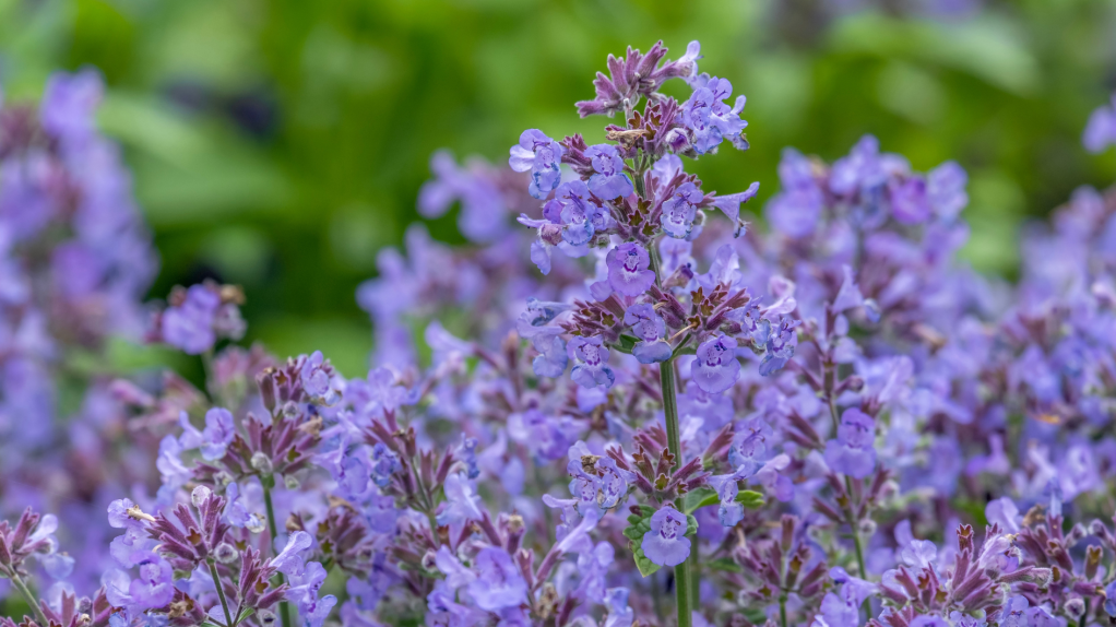 Katzenminze ist eine unkomplizierte Staude mit lockerem Wuchs und kleinen, violettblauen Blüten, die monatelang für Stimmung im Beet sorgen. Außerdem ist sie ein echter Insektenmagnet – Bienen und Hummeln lieben sie! Die Katzenminze eignet sich zudem für sonnige Beete, Steingärten oder als lockere Beetumrandung.