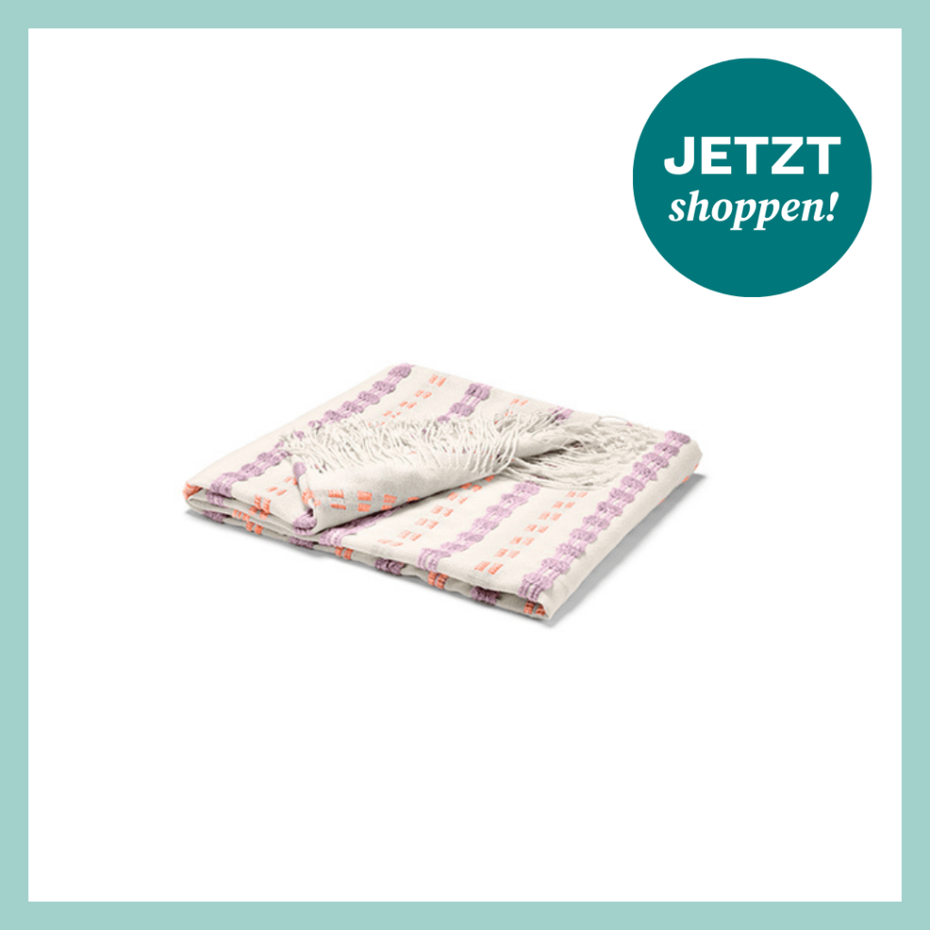 <p>Mit der <a href="https://td.oo34.net/cl/?aaid=peyr3g2o4l0f39fm&;ein=3y2xvcwn526qpebh&;paid=gj9t2uqwsjpzsxbq&;subid=5611007-Text" target="_blank" rel="noreferrer noopener">Wohndecke von Tchibo</a>* in sanften Beige-, Apricot- und Fliedertönen verleihst du deinem Zuhause einen Hauch von Farbe und Gemütlichkeit. In den Maßen von 130 x 170 cm und den charmanten Fransen an den kurzen Seiten eignet sie sich perfekt als stylischer Überwurf für Bett, Sofa oder Sessel.</p>