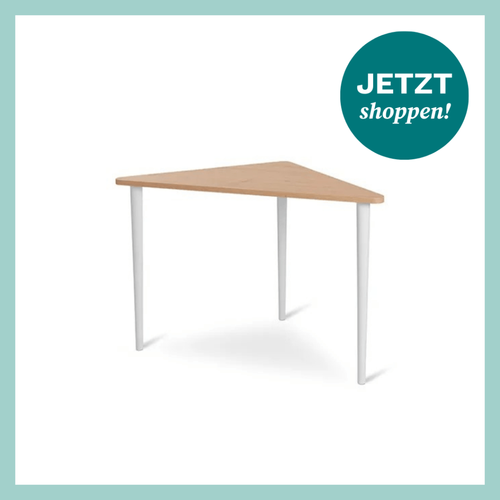 Genau deshalb ist dieser Tisch von Tchibo so genial! Sein cleveres, dreieckiges Design ermöglicht es, ihn einfach in eine freie Ecke zu stellen und einen perfekten Home-Office-Platz zu kreieren, ohne wertvollen Raum zu verschwenden.